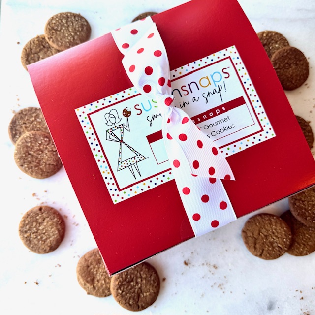 Full of Valentine Cheer ❤️ Share the love with our Valentine’s Edition Susansnaps Grand Gift Box, filled with 60 of our signature Original gingersnap cookies and packaged in a festive red box finished with red-and-white ribbon.